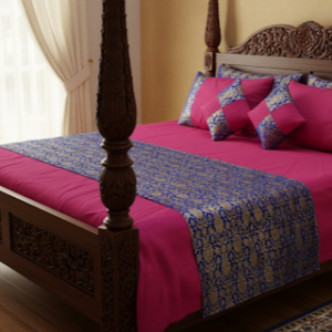 Rani pink and Royal blue colour Brocade Banarasi bedsheet set