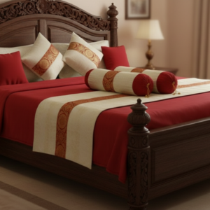 Off-white & Maroon Brocade Banarasi bedsheet set