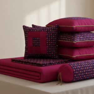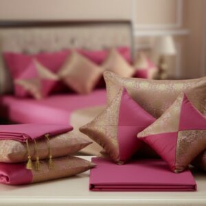 Rani pink check box design brocade Banarasi silk bedsheet set