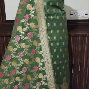 Olive Green Banarasi Silk Unstitched Salwar Kameez Set with Floral Meenakari Dupatta