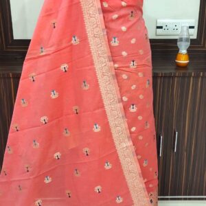 Heritage Collection: Peach & Gold Hand-Woven Banarasi Silk Suit