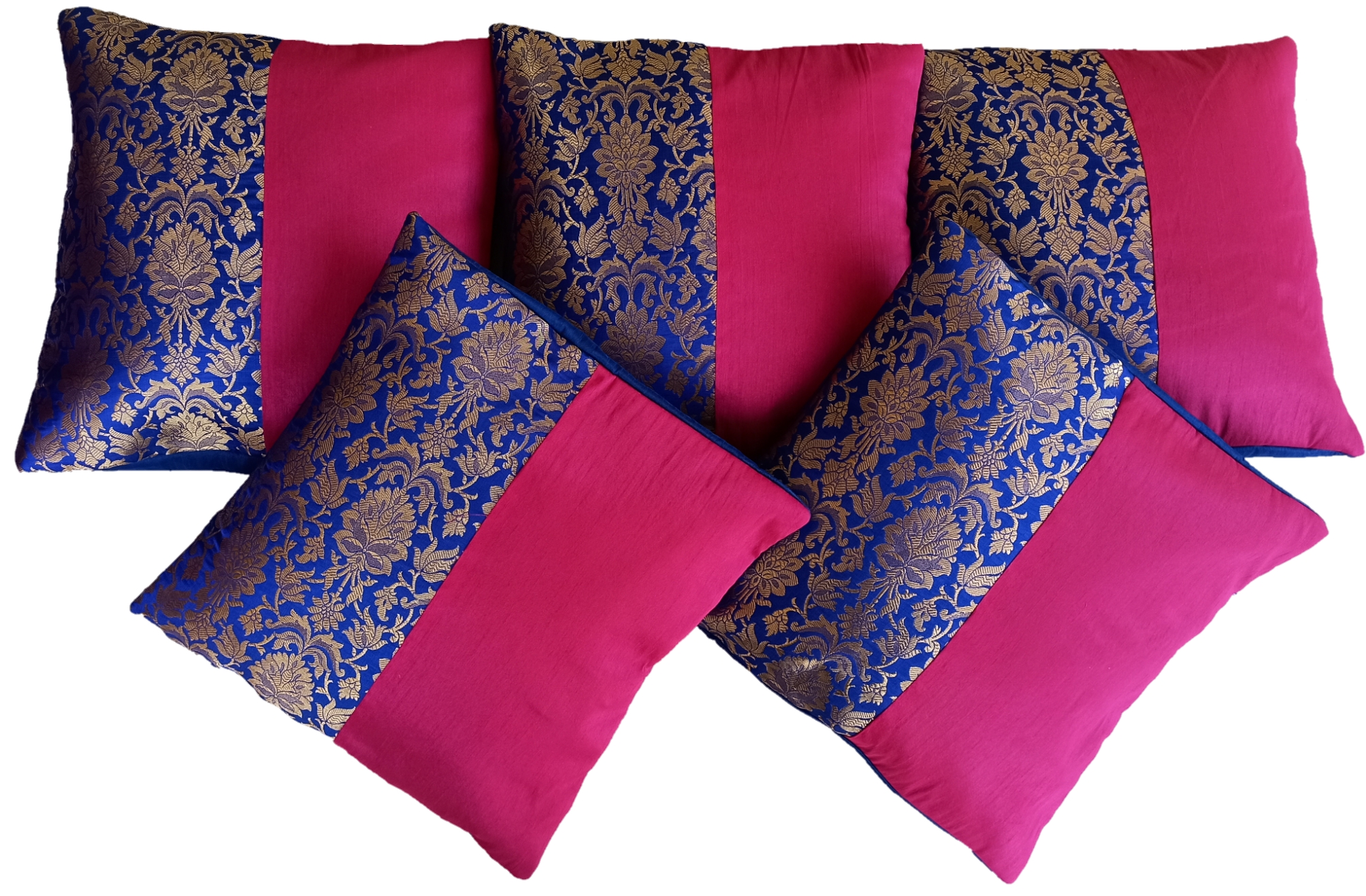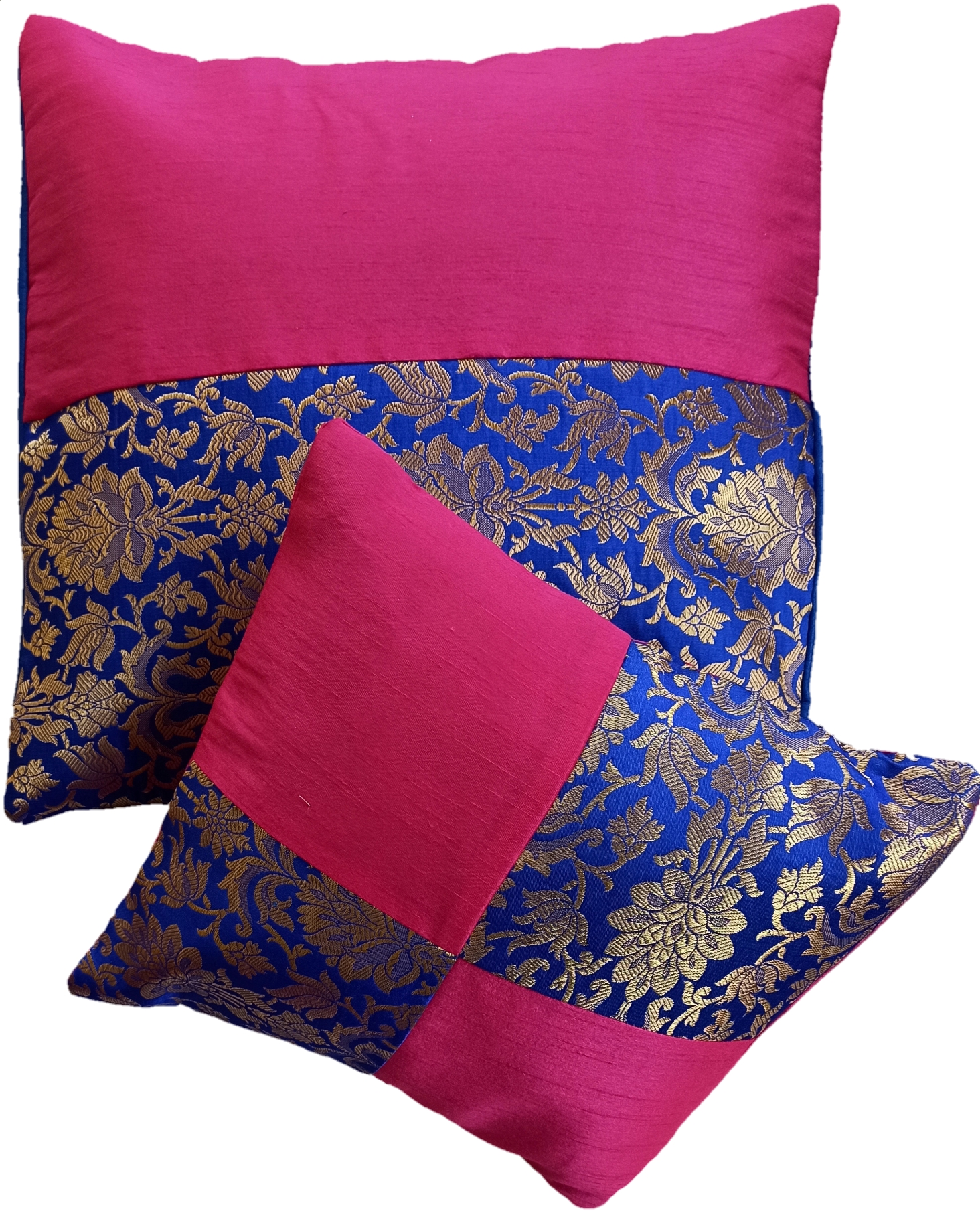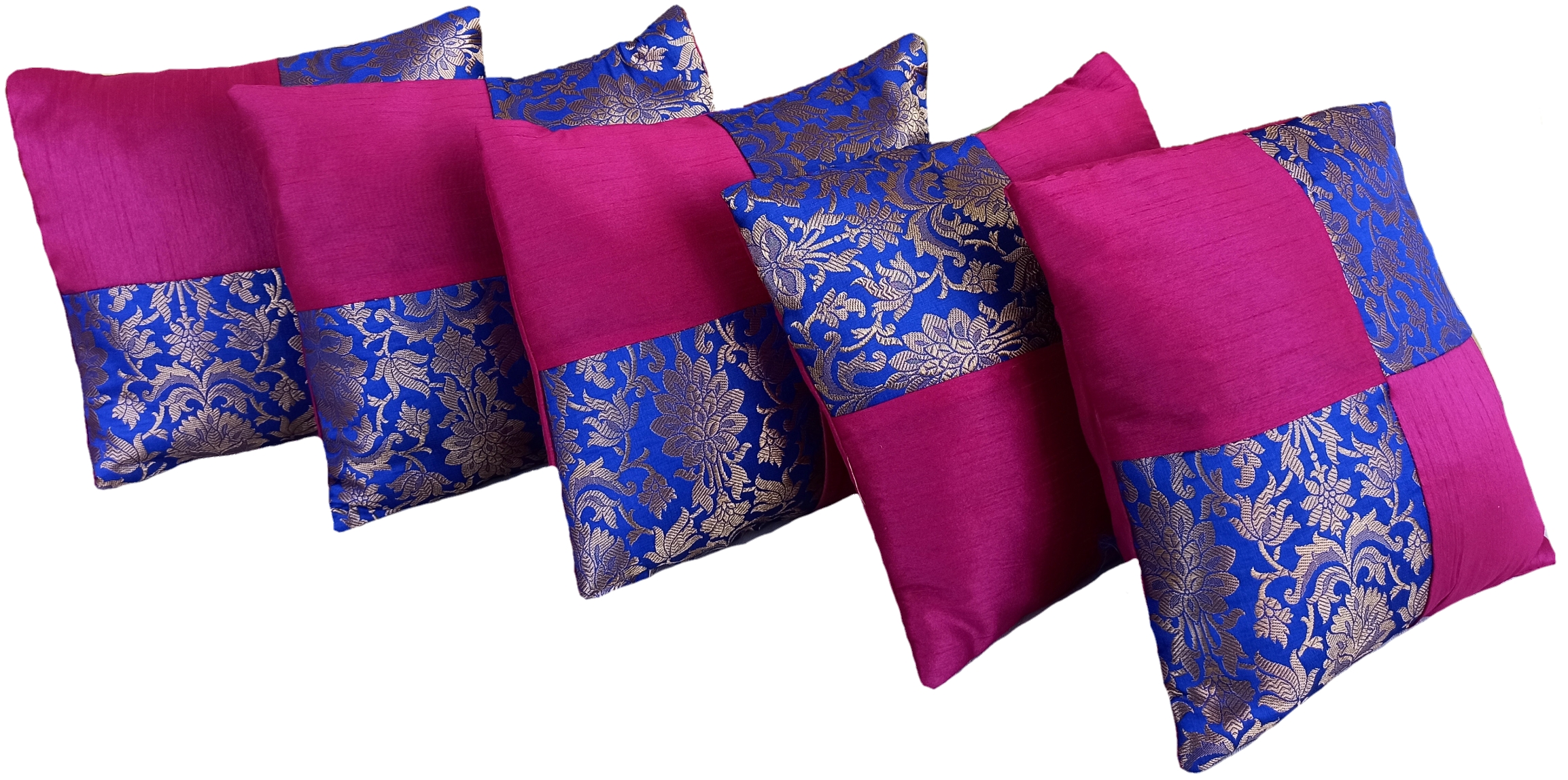 Color: Royal Blue, Magenta Pink, and Metallic Gold.