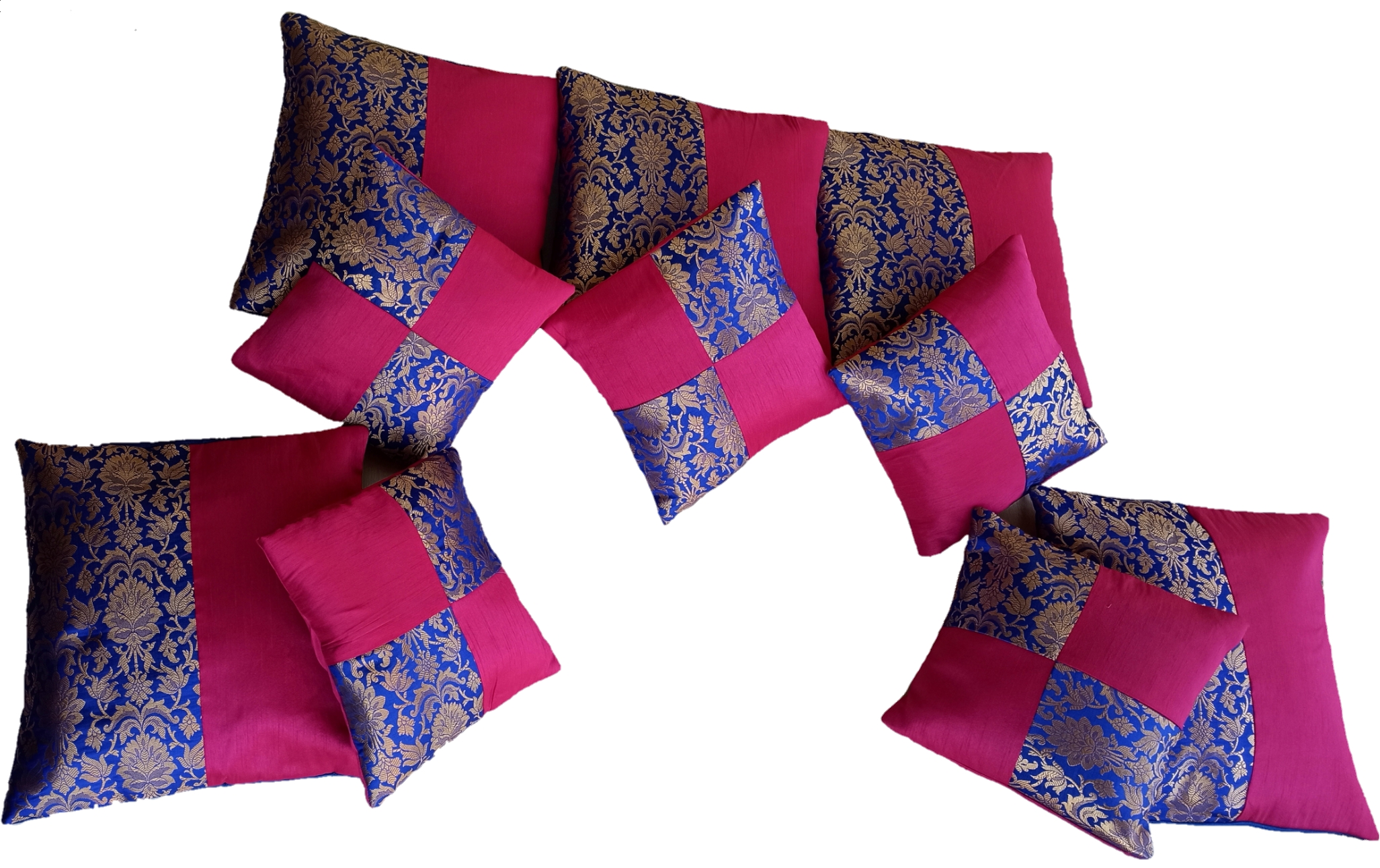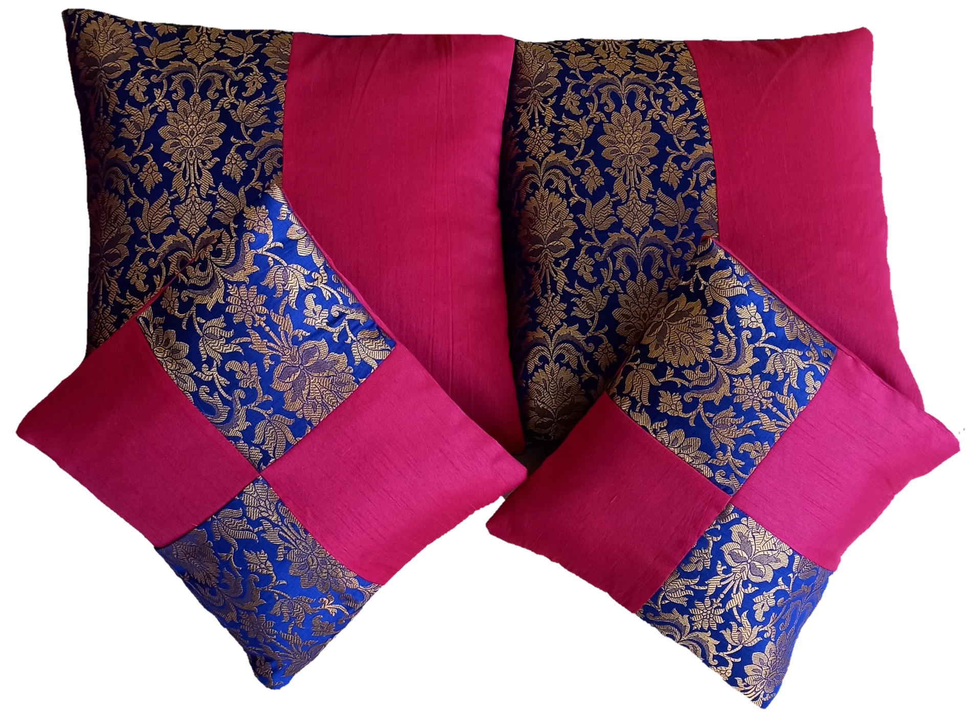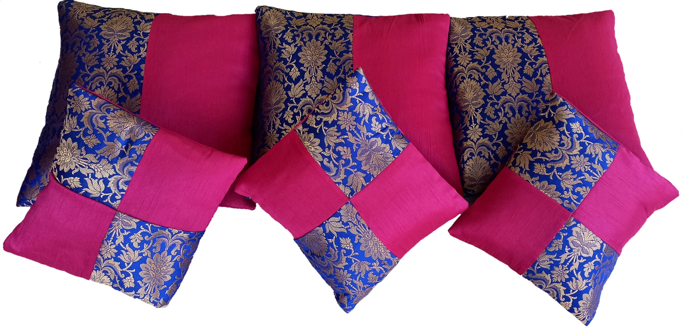Color: Royal Blue, Magenta Pink, and Metallic Gold.