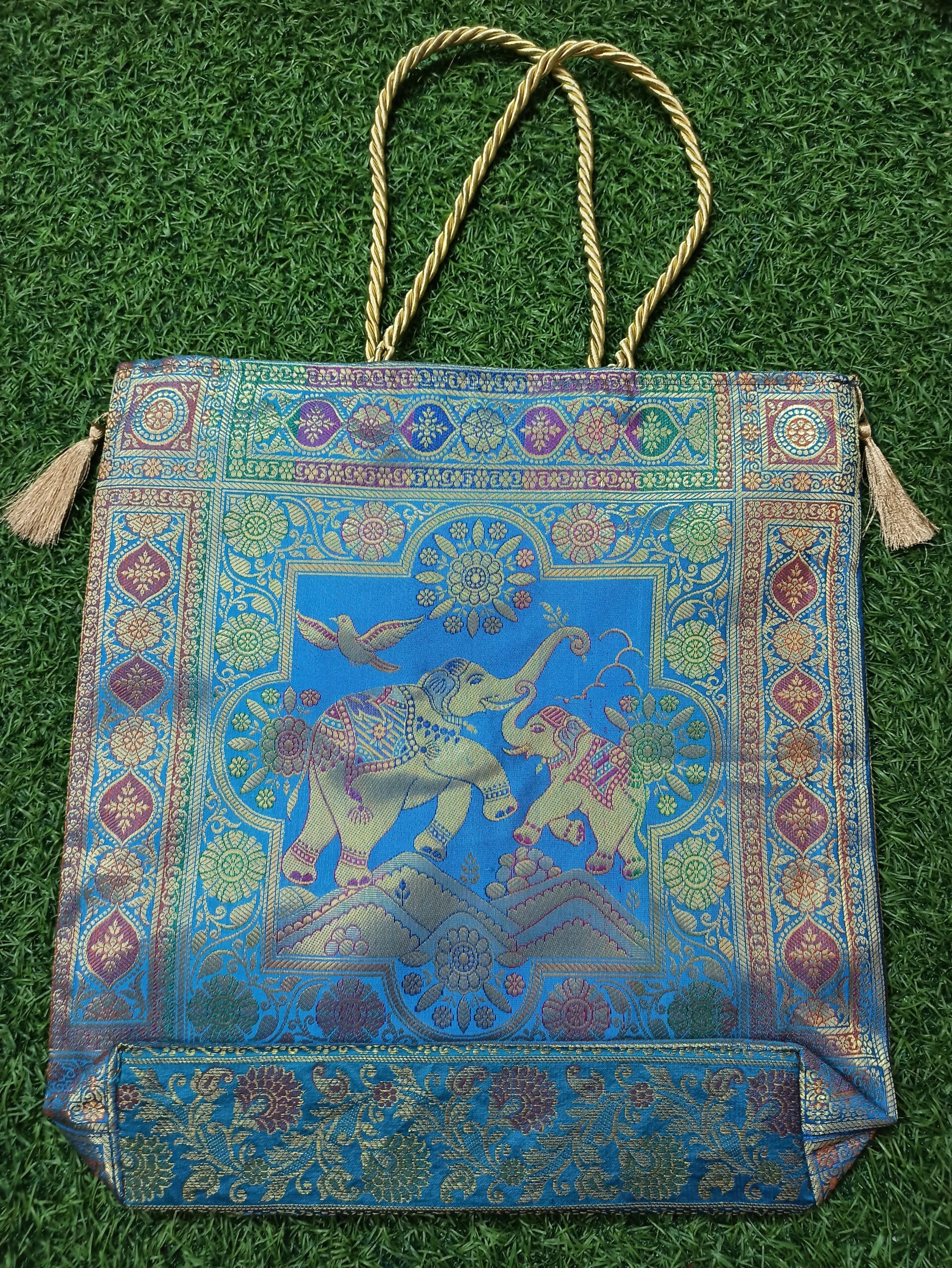 Banarasi Silk Brocade Handbag with Elephant Motif – Gold Zari Ethnic Tote