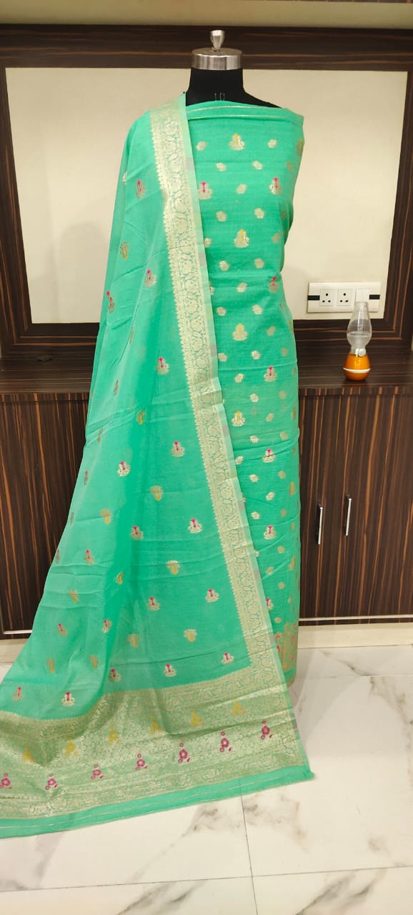 Set Includes-“Kurta fabric 2.25mt. Pants fabric 2 mt, [unstitched fabric]and Dupatta”